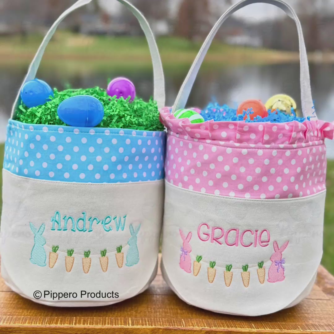 Personalized Bunny with Carrots Design Embroidered Kid's Easter Egg Candy Basket